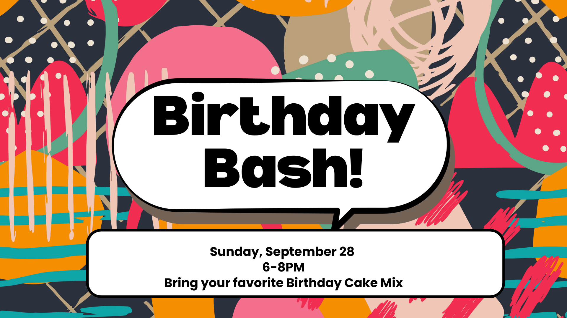 Join us Sunday, September 28 from 6-8PM. Together we will bake the Birthday cakes and while they are baking we play some epic fun games. Afterwards we will sing Happy Birthday and enjoy cake!!